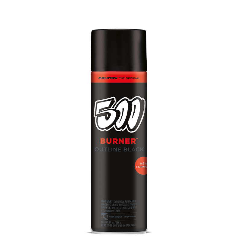 BURNER OUTLINE BLACK 500 ml:n pakkauksessa on uusi kehitetty koostumus, joka sopii täydellisesti legendaariseen BURNER CHROME -tuotteeseen. Kompromissittomat ääriviivat ja rikkaat, syvät mustat kontrastit ovat tämän erityisesti ääriviivoja varten suunnitellun spraymaalin kohokohtia.